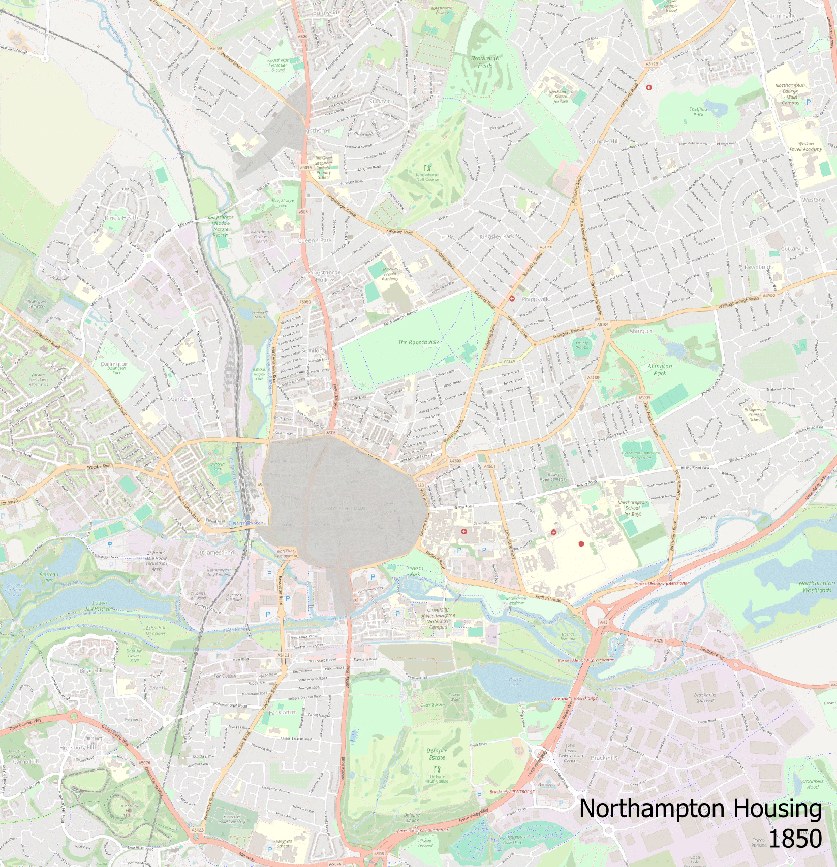 Over 75 years, Northampton’s expansion was steady and undramatic. Outlying villages had become suburbs; only Dallington still remained for future absorption. The most noticeable development was eastward, encouraged by new estates on higher ground. Far Cotton grew rapidly in the south.